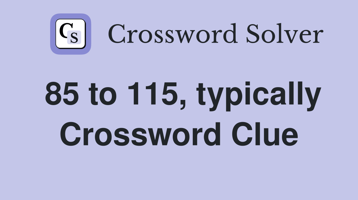 Web answers for 85 to 115, typically crossword clue, 7 letters. 85 to 115 typically crossword clue. Did you came up with a solution that did not solve the clue? I've seen this clue in the new york times. This crossword clue was last seen on march 25 2024 new york.