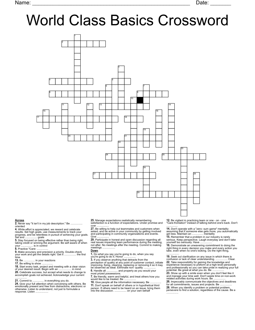 Demonstrate Vocabulary knowledge Crossword Puzzle