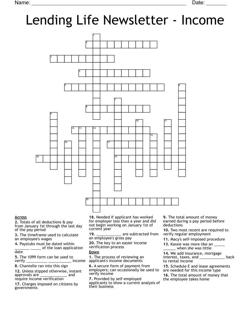 Lending Life Newsletter Crossword WordMint
