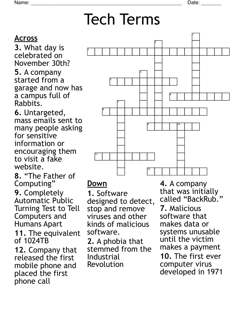Tech Terms Crossword WordMint
