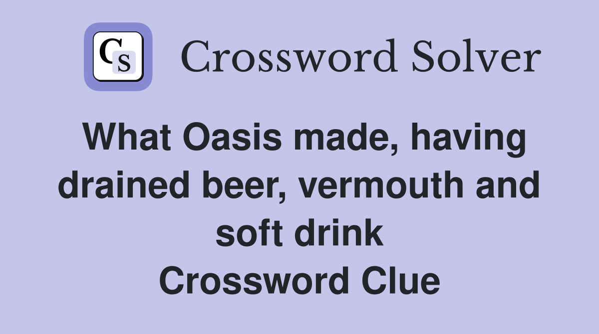 What Oasis made, having drained beer, vermouth and soft drink Crossword Clue Answers