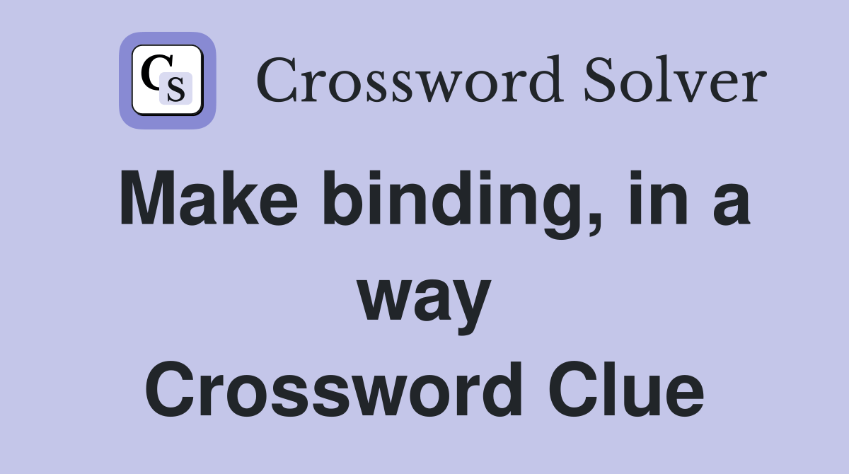 Make binding, in a way Crossword Clue Answers Crossword Solver