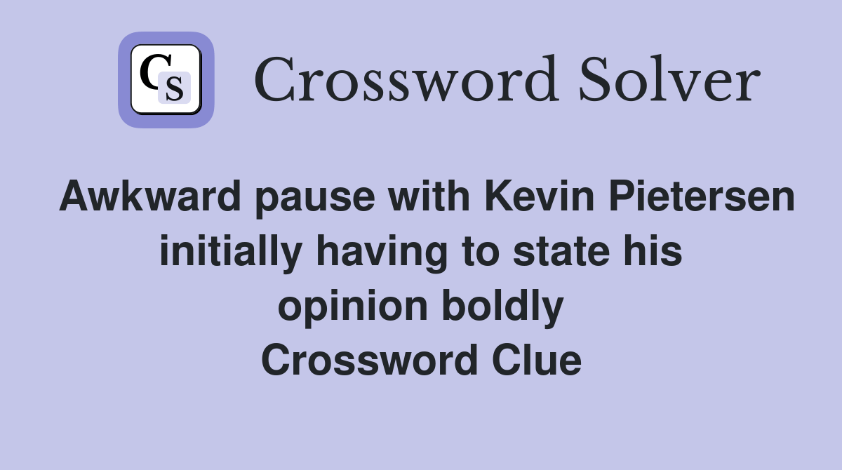Awkward pause with Kevin Pietersen initially having to state his opinion boldly Crossword Clue