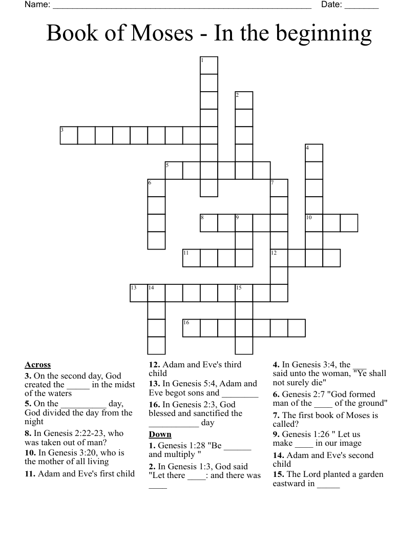 Book of Moses In the beginning Crossword WordMint