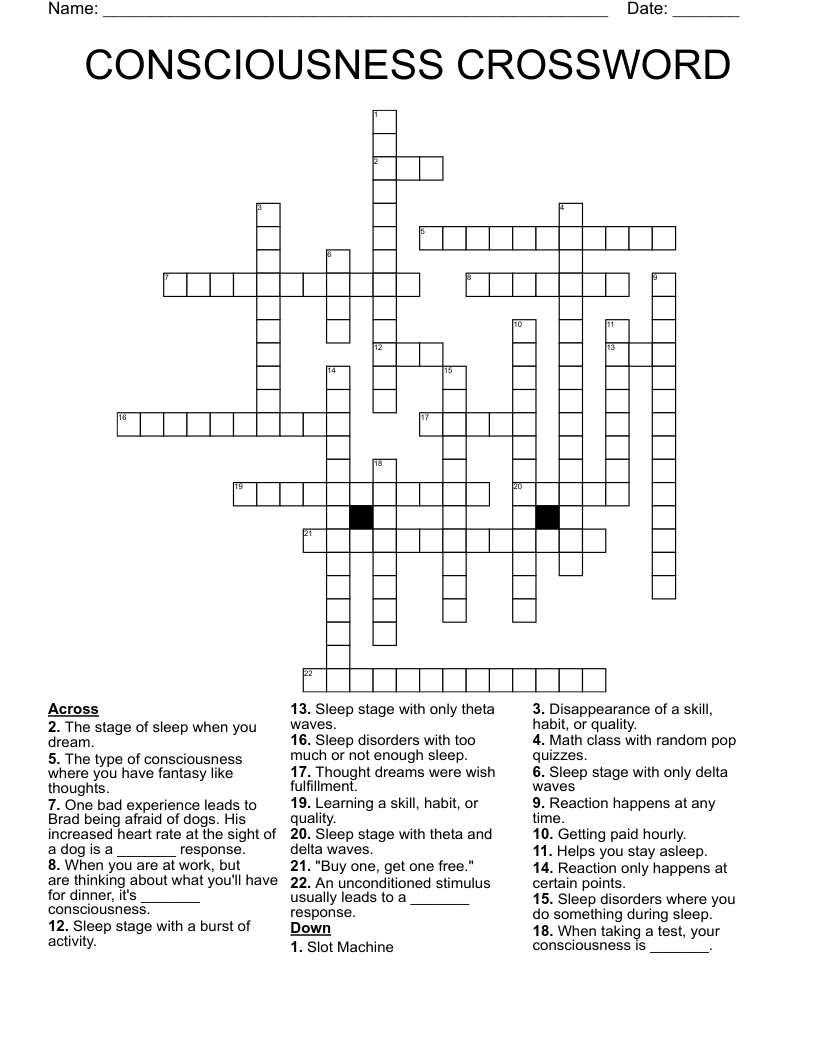 Sleep and Consciousness Crossword WordMint