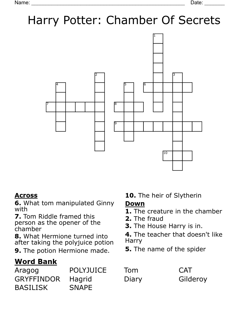Harry Potter Chamber Of Secrets Crossword WordMint