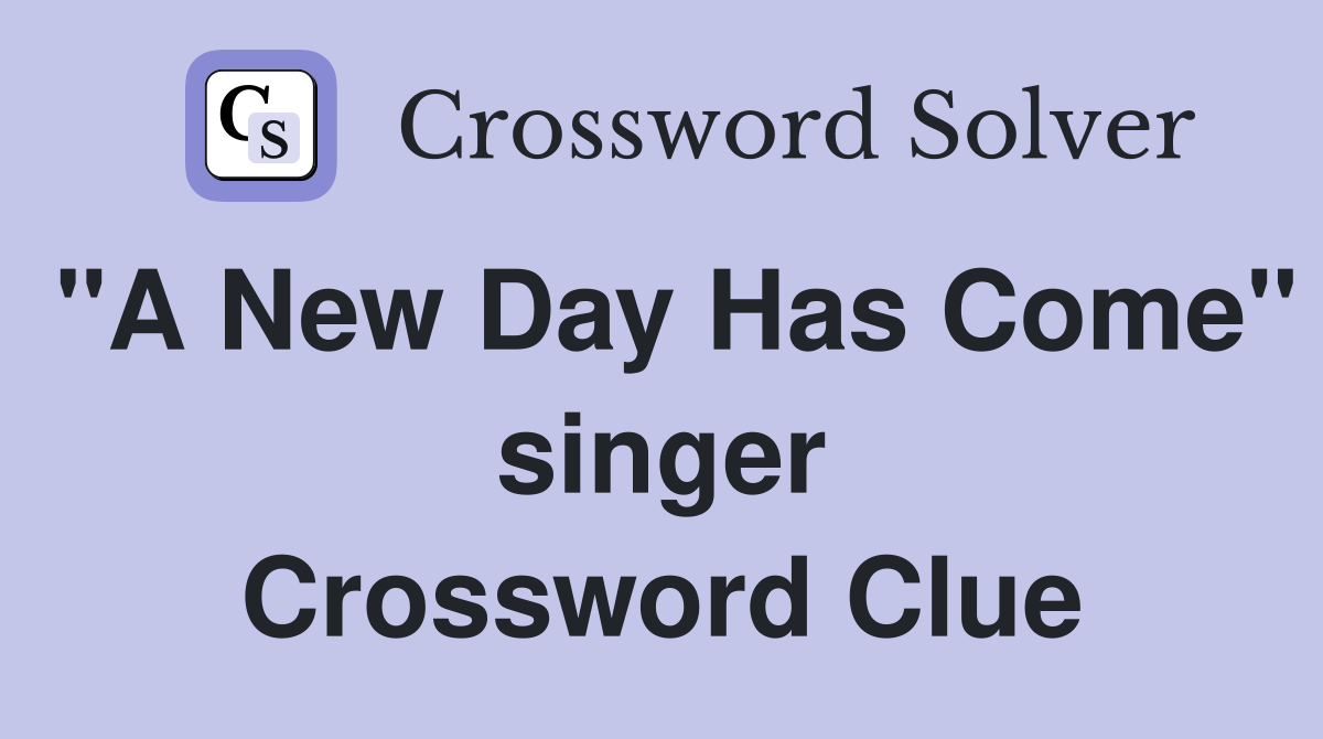 "A New Day Has Come" singer Crossword Clue Answers Crossword Solver
