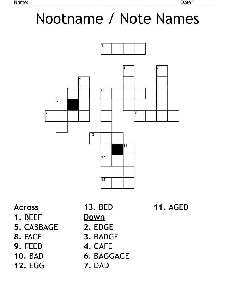 Nootname / Note Names Crossword WordMint