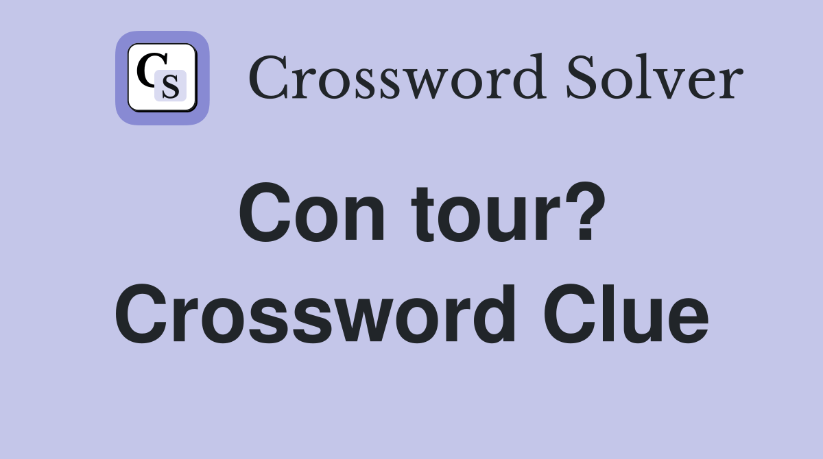 This clue was last seen on. Web here is the answer for the crossword clue con tour? The possible answer is meetandgreet. We will try to find the right answer to this particular crossword. The crossword solver finds answers to classic.