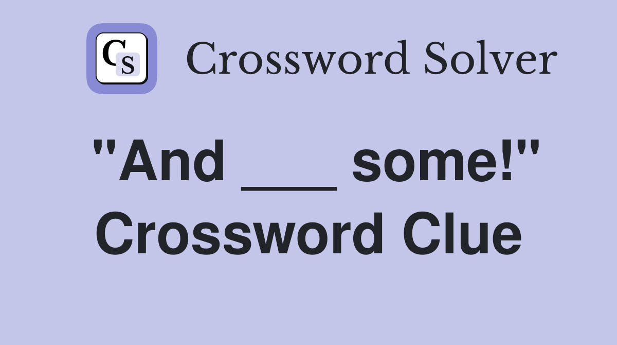 "And ___ some!" Crossword Clue Answers Crossword Solver