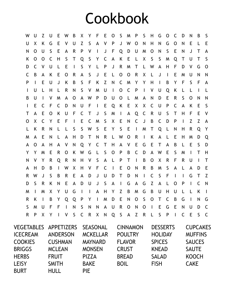 Cookbook Word Search WordMint