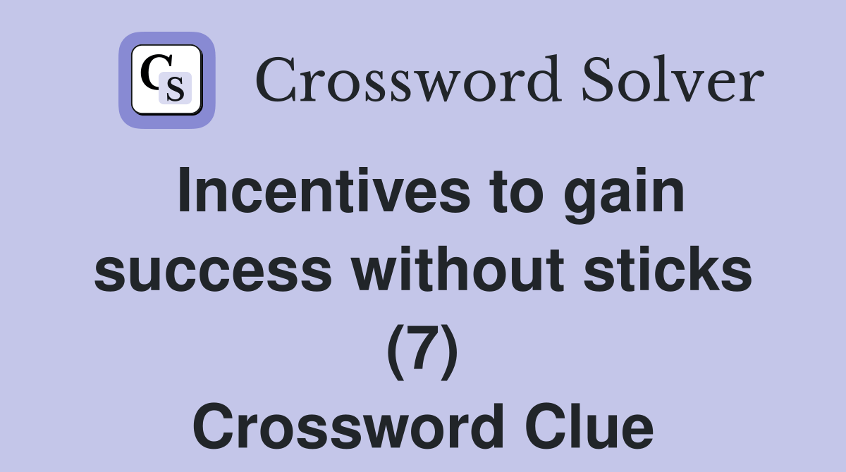 Incentives to gain success without sticks (7) Crossword Clue Answers Crossword Solver