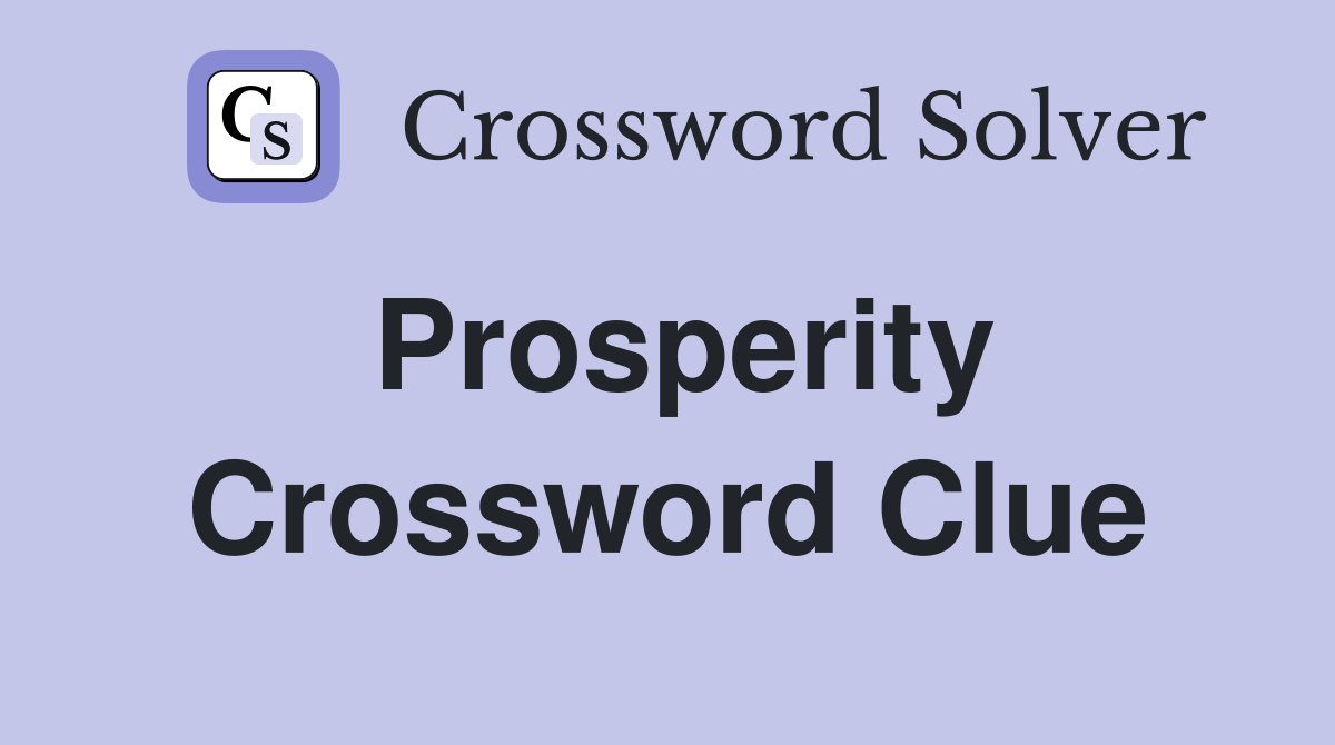 Web we found 13 answers for the crossword clue prosperity. If you haven't solved the crossword clue. We have 7 answers for the clue prosperity. There are related clues (shown below).