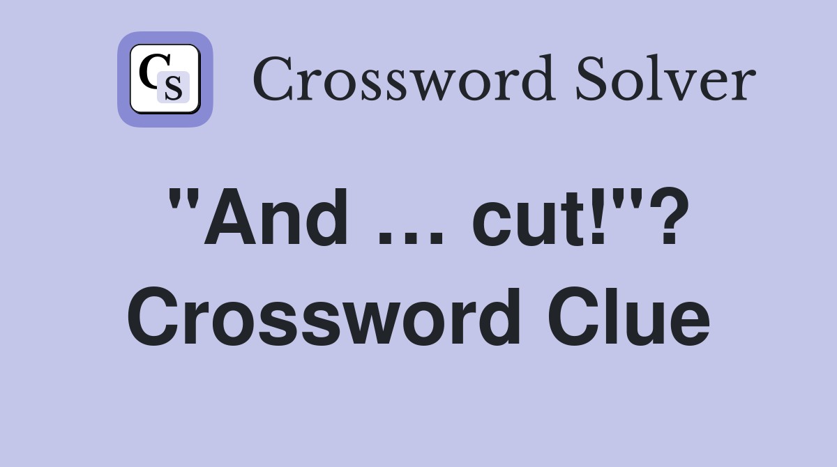 "And … cut!"? Crossword Clue Answers Crossword Solver