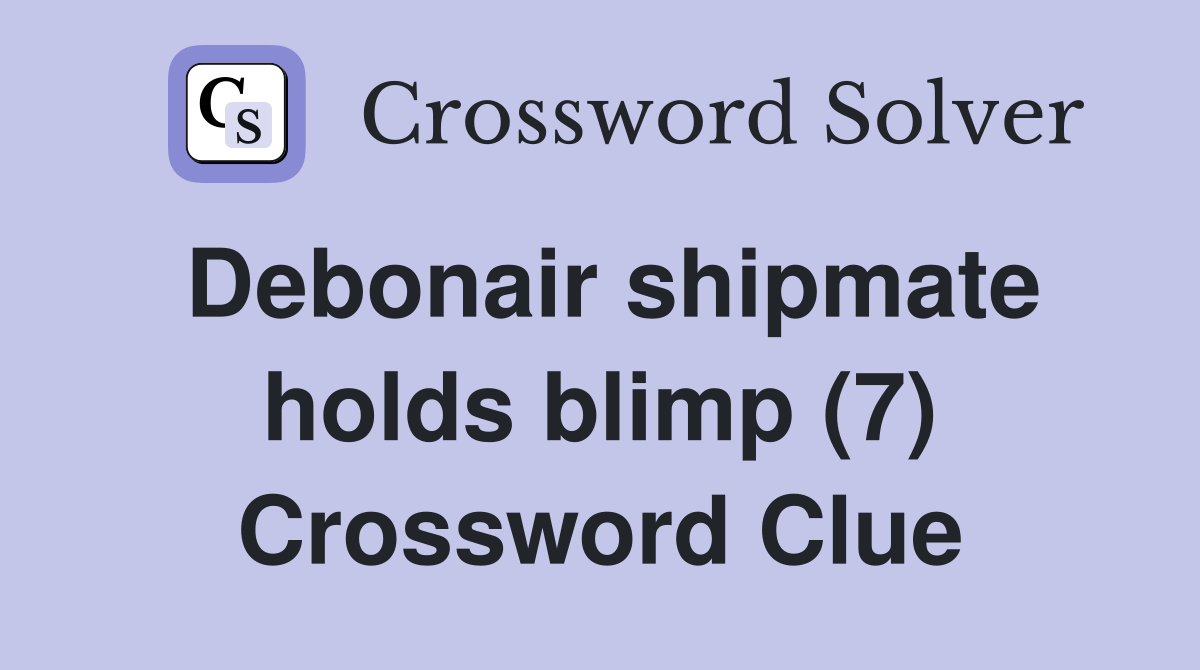 Debonair shipmate holds blimp (7) Crossword Clue Answers Crossword Solver