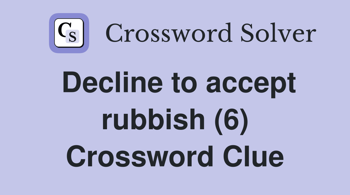 Decline to accept rubbish (6) Crossword Clue Answers Crossword Solver