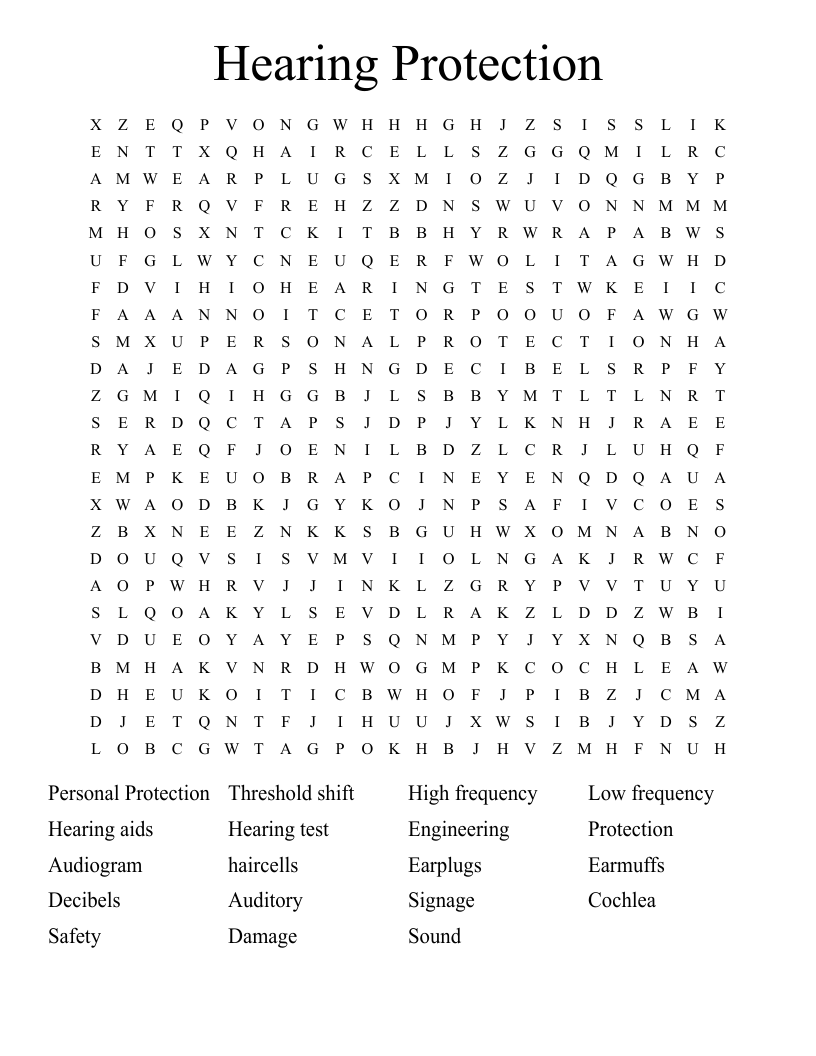 Hearing Protection Word Search WordMint