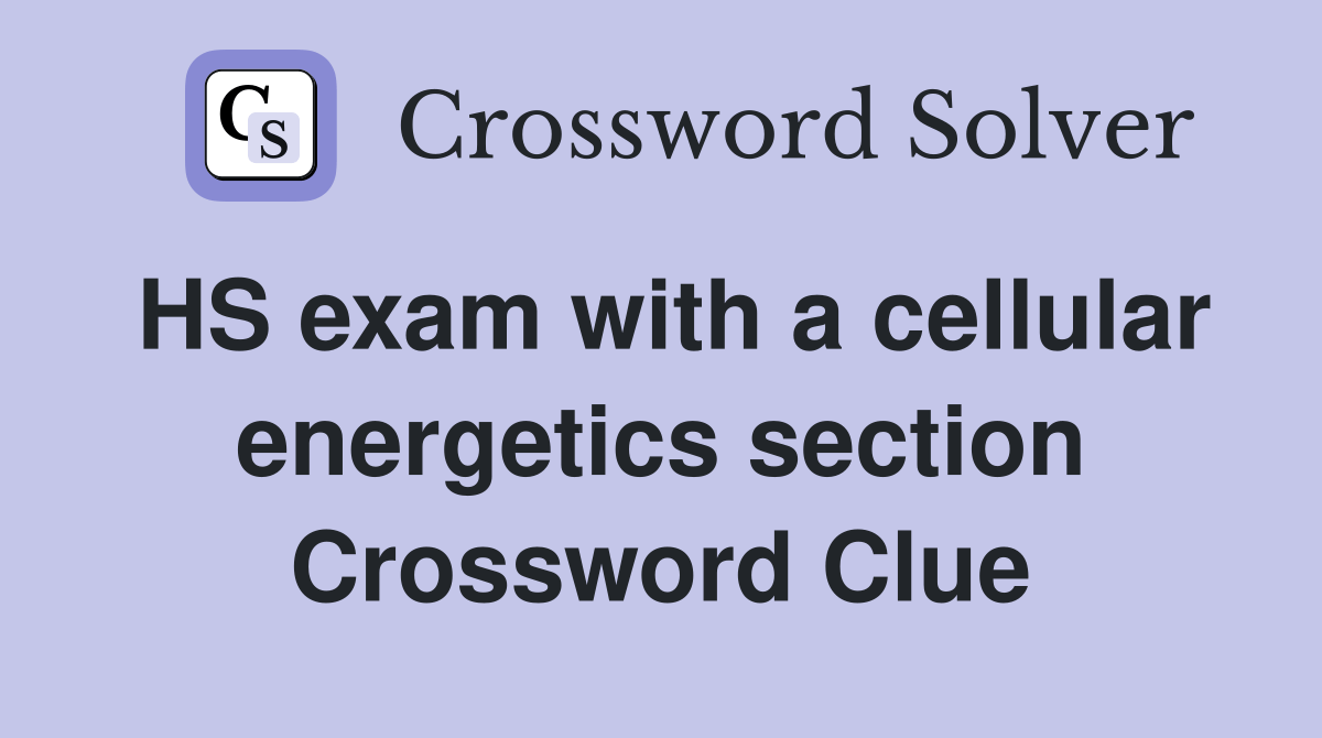 HS exam with a cellular energetics section Crossword Clue Answers Crossword Solver