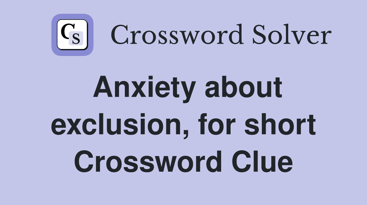 Anxiety about exclusion, for short Crossword Clue Answers Crossword Solver