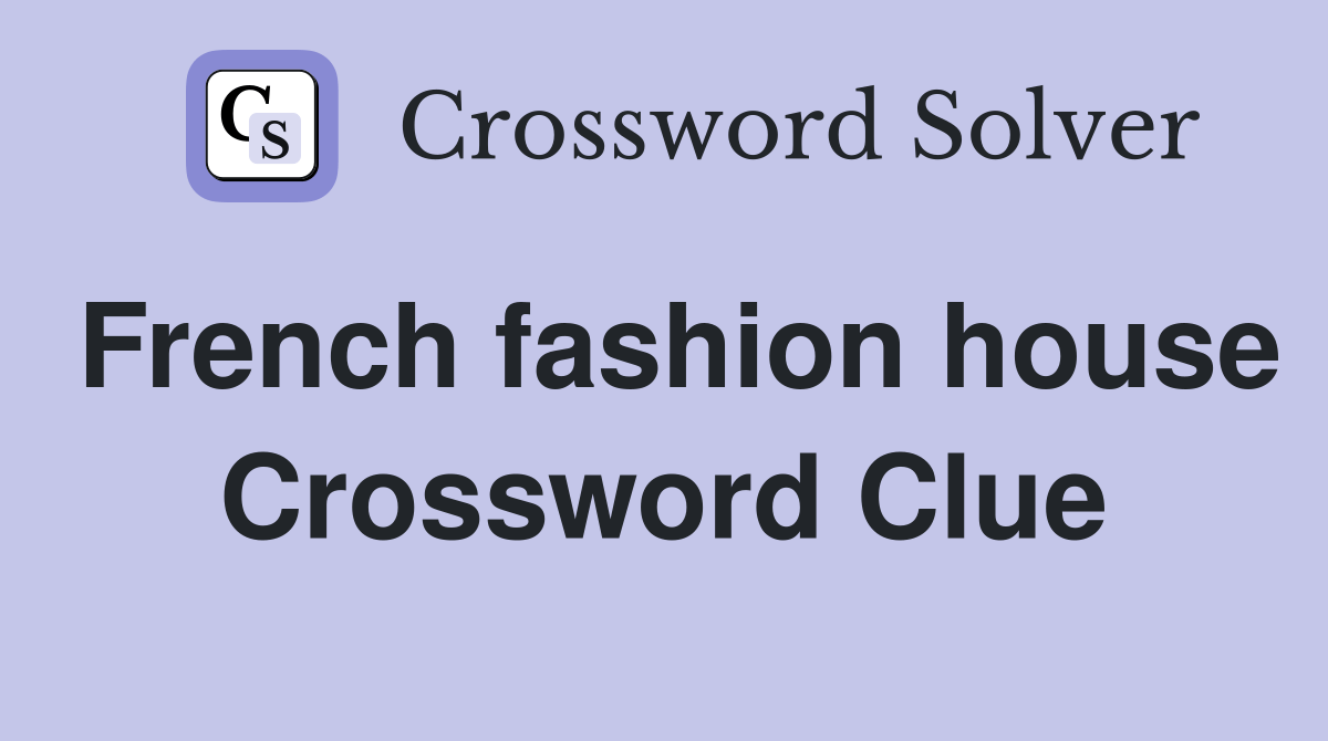 Web here is the answer for the crossword clue french fashion house last seen in universal puzzle. The crossword solver finds answers to. Web here is the answer for the crossword clue fashion house last seen in wall street journal puzzle. We have found 40 possible. Web french fashion house nyt crossword clue answers are listed below.