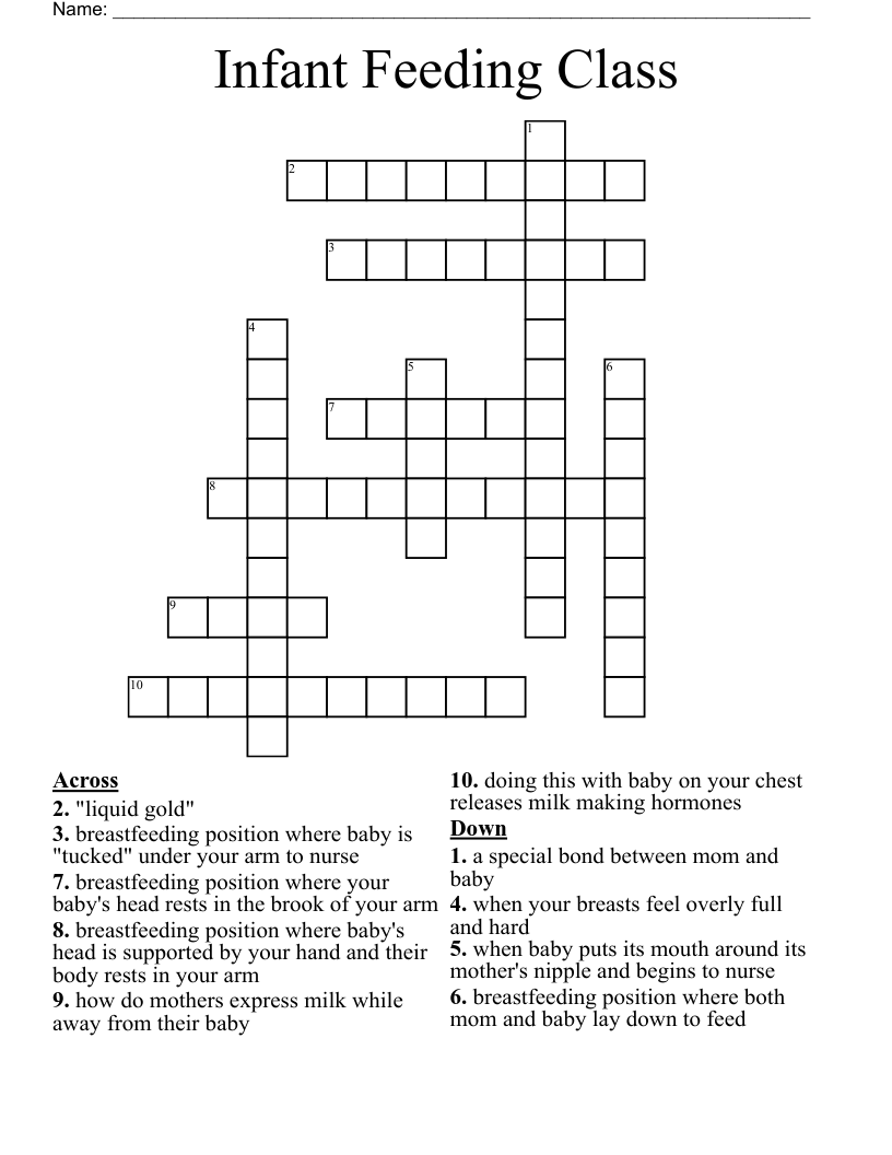 Breastfeeding vs. Bottle Feeding Crossword WordMint