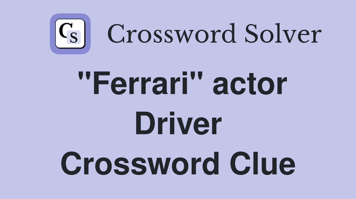 "Ferrari" actor Driver Crossword Clue Answers Crossword Solver