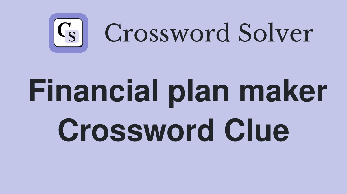 Financial plan maker Crossword Clue Answers Crossword Solver