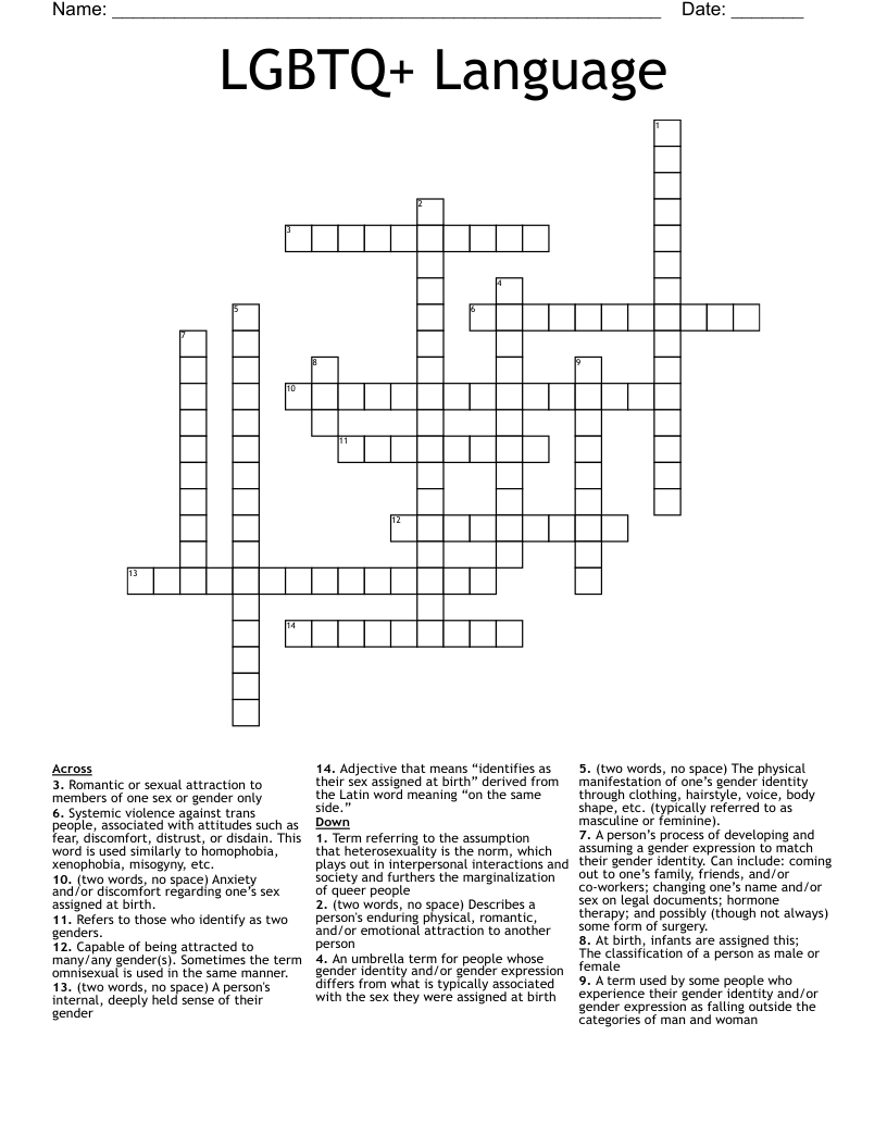 LGBTQ+ Language Crossword WordMint