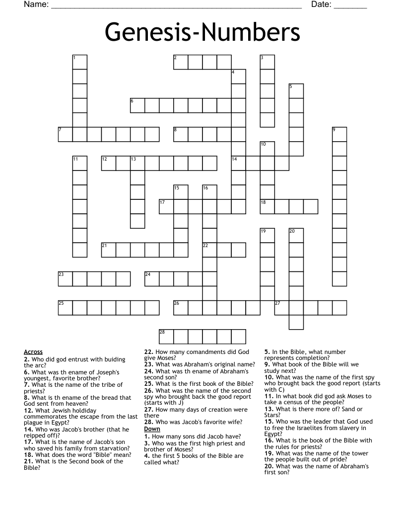 We have found 40 possible. See the list of clues,. A further 9 clues may be related. The crossword solver finds answers to. Web find out the possible names from the biblical book of genesis that can be used in crossword puzzles.