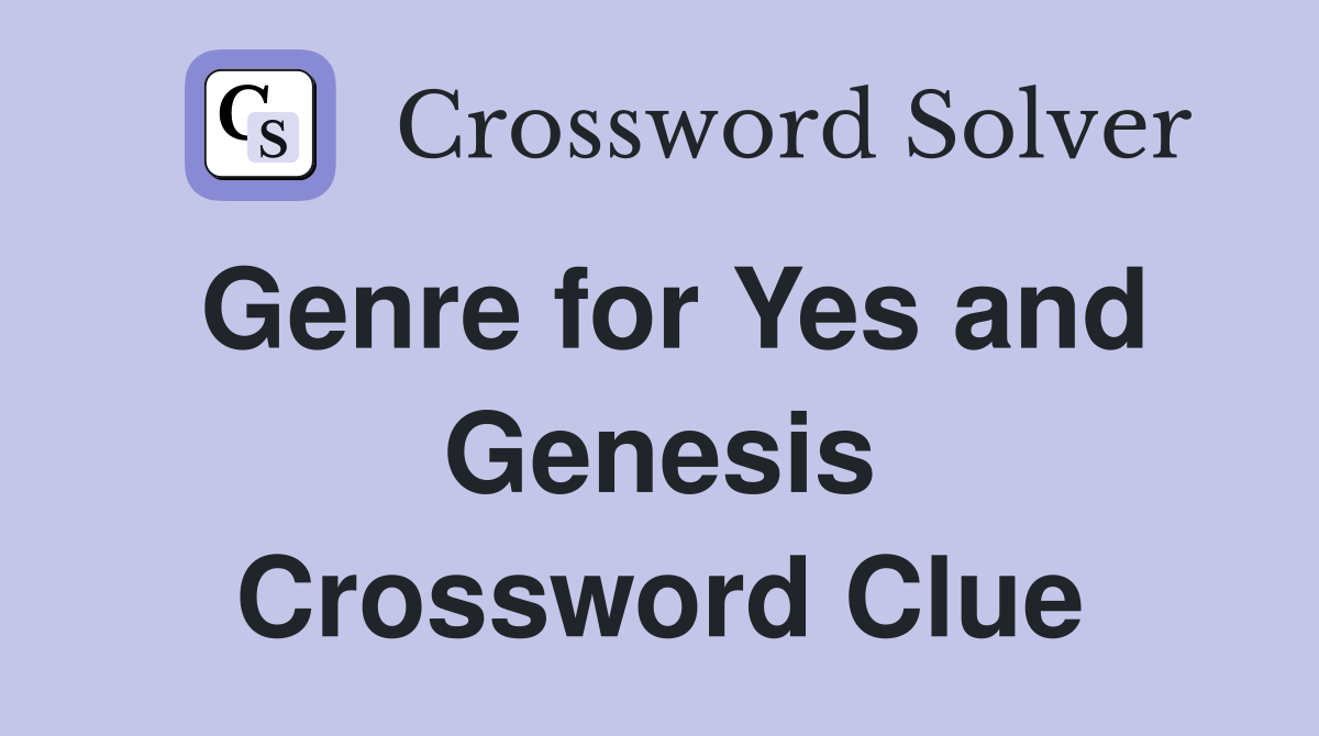 Genre For Yes And Genesis Is A Crossword Clue For Which We Have 1.