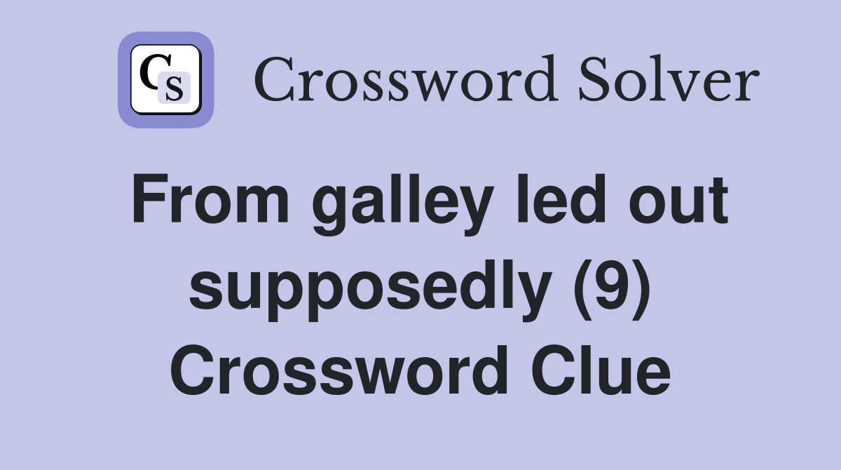 From galley led out supposedly (9) Crossword Clue Answers Crossword Solver