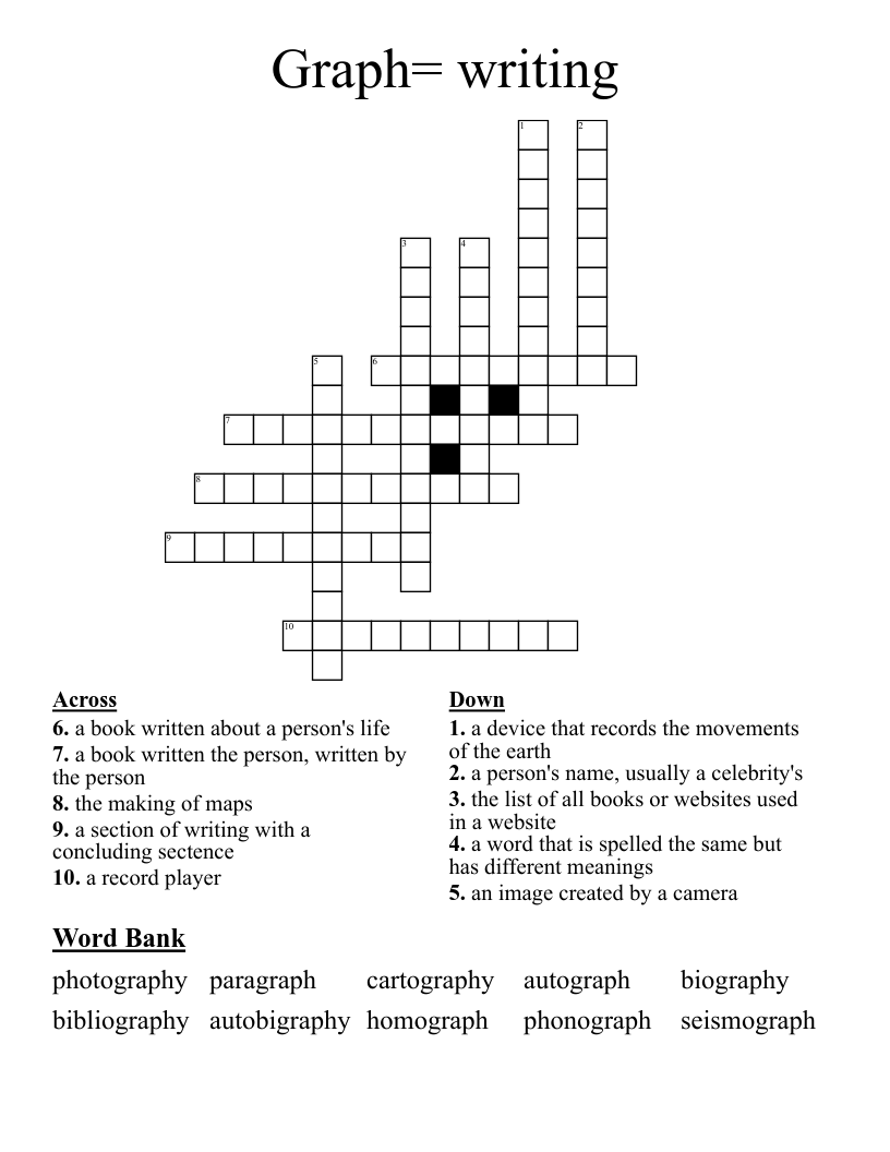 Graph= writing Crossword WordMint