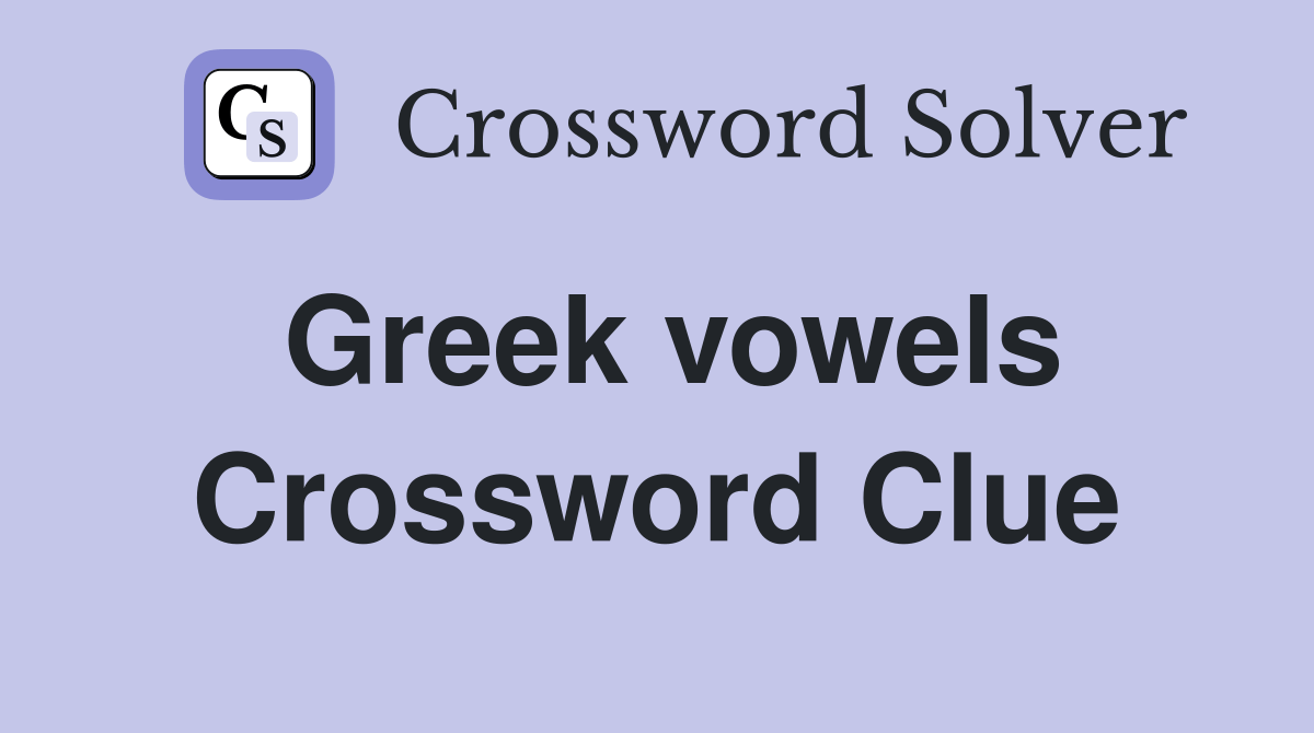 Web here is the answer for the crossword clue greek vowel featured in wall street journal puzzle on july 8, 2024. Web the crossword solver found 30 answers to greek vowels, 10 letters crossword clue. Learn about the six vowels used in the. Web find six possible solutions for the crossword clue greek vowels with 4 to 8 letters.