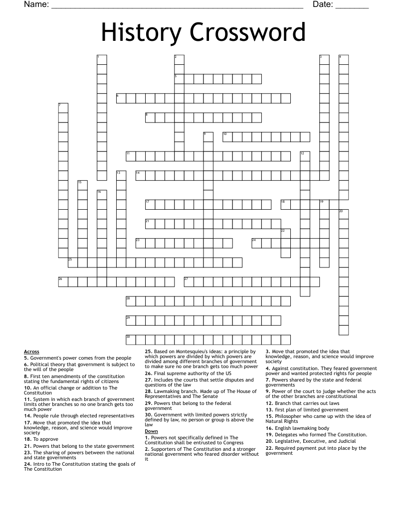 History Crossword WordMint