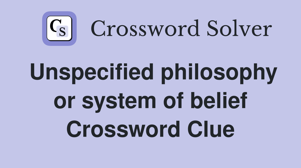 Unspecified philosophy or system of belief Crossword Clue Answers Crossword Solver
