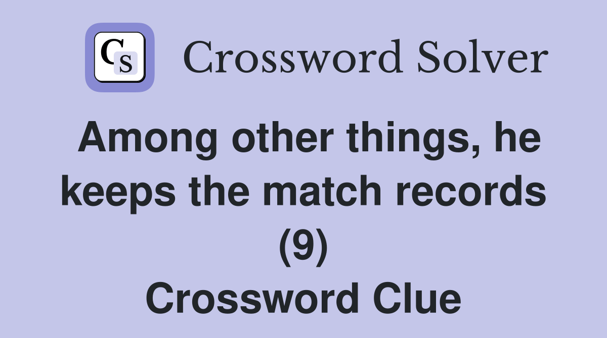 Among other things, he keeps the match records (9) Crossword Clue Answers Crossword Solver