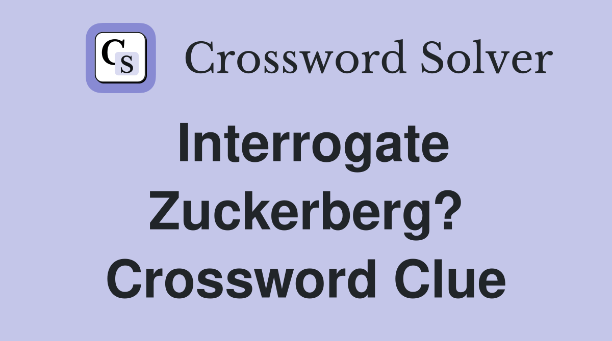 Interrogate Zuckerberg? Crossword Clue Answers Crossword Solver