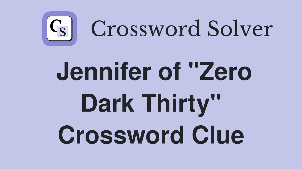 Jennifer of "Zero Dark Thirty" Crossword Clue Answers Crossword Solver