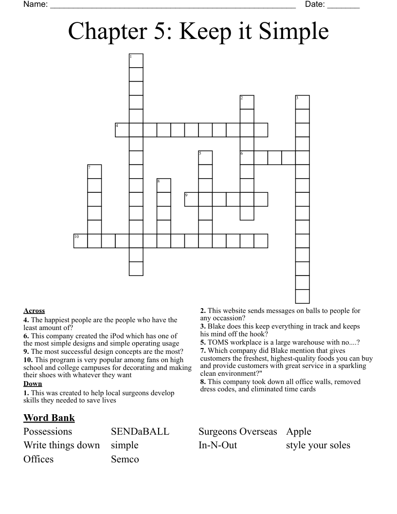 Chapter 5 Keep it Simple Crossword WordMint