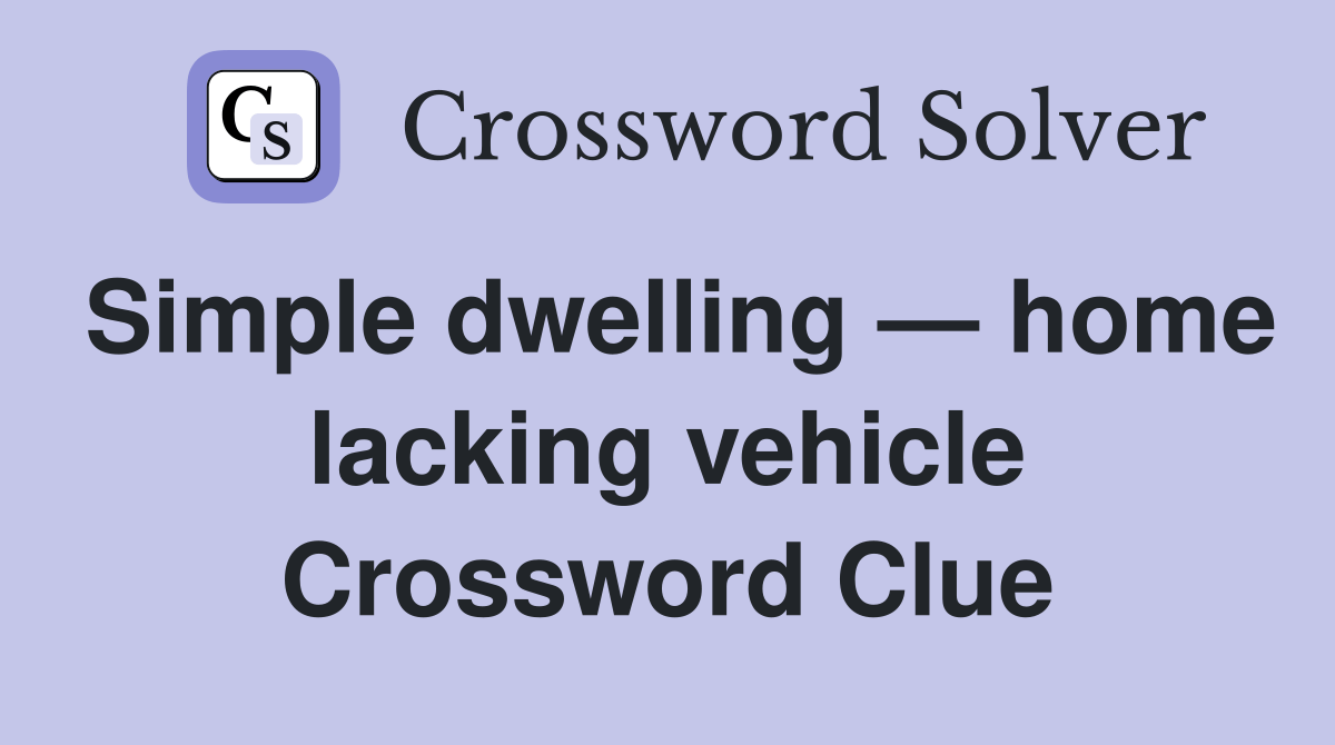 Simple dwelling — home lacking vehicle Crossword Clue Answers Crossword Solver