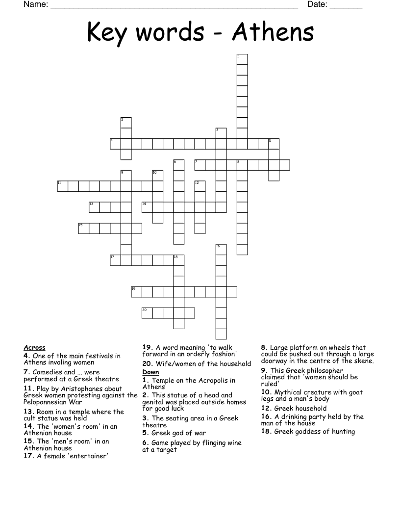 Key words Athens Crossword WordMint