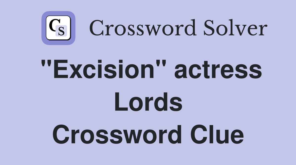 "Excision" actress Lords Crossword Clue Answers Crossword Solver