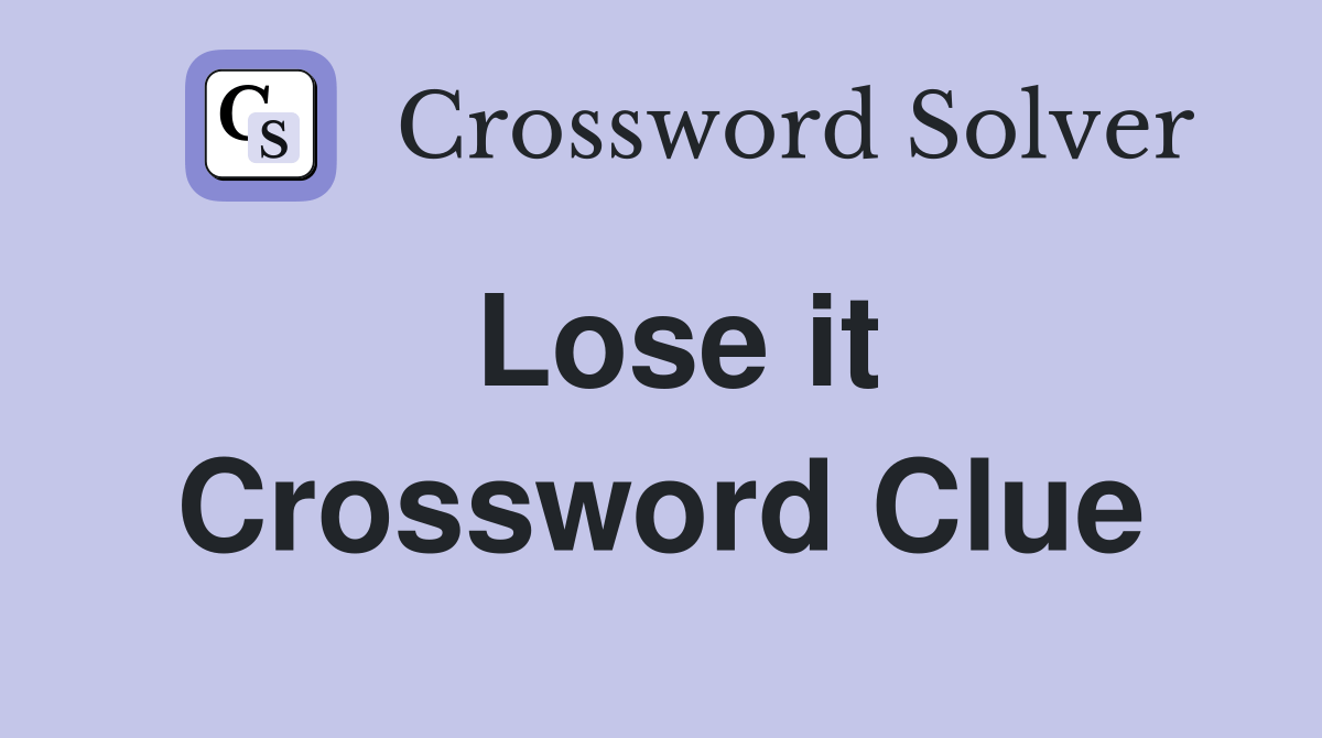 Web here is the answer for the crossword clue lose it last seen in commuter puzzle. Web the crossword solver found 55 answers to lose it, 11 letters crossword clue. We have found 44 possible answers for this. The crossword solver finds answers to classic. Then please submit it to us so we can make the clue database even.