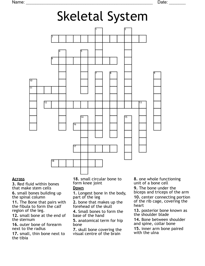 Kinesiology Anatomy Puzzle Crossword WordMint