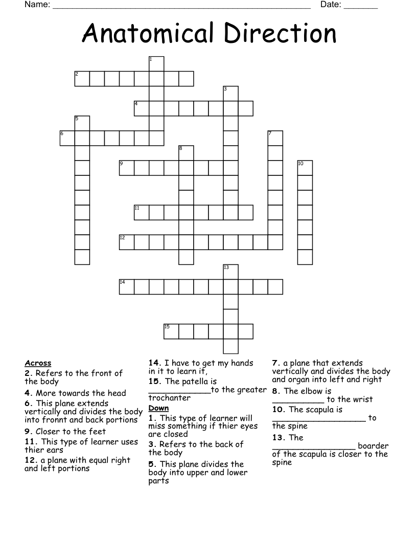 Anatomical Direction Crossword WordMint