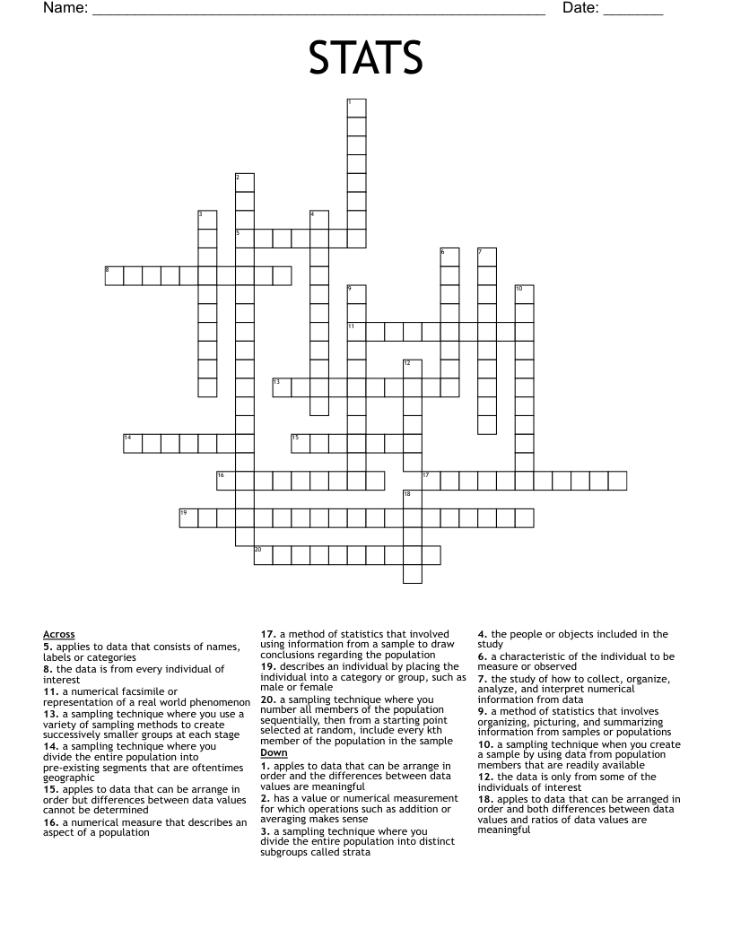 Web on this page you will find the many stats crossword puzzle clue answers and solutions. We will try to find the right answer to this particular crossword clue. Web the crossword solver found 30 answers to many stats, 3 letters crossword clue. Many stats is a crossword puzzle clue that we have spotted 1 time.