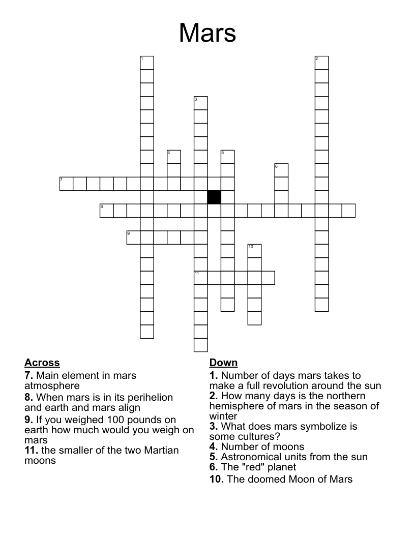 Mars Moon Crossword - Web moon of mars is a crossword puzzle clue that we have spotted 14 times. Here is the answer for the crossword clue mars moon last seen in universal puzzle. The crossword solver finds answers to classic. Web all crossword answers with 6 letters for moon of mars found in daily crossword puzzles: Web moon of mars crossword clue. There are related clues (shown below). Web the crossword solver found 30 answers to mars moon, 6 letters crossword clue. We will try to find the right answer to this particular crossword. The most common solutions for the crossword clue moon of mars are phobos with 6. Web today's crossword puzzle clue is a quick one: