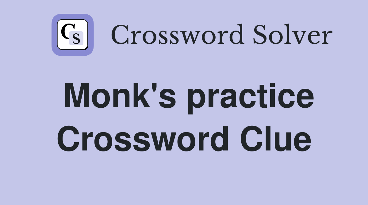 Here is the solution for the monk's practice clue featured in commuter puzzle. Search for crossword clues ⏩ 2, 3, 4, 5, 6, 7, 8, 9, 10, 11, 12, 13, 14, 15, 16, 17, 22. Web answers for monk's practice crossword clue. Web now, let's get into the answer for monk's practice crossword clue most recently seen in the daily.