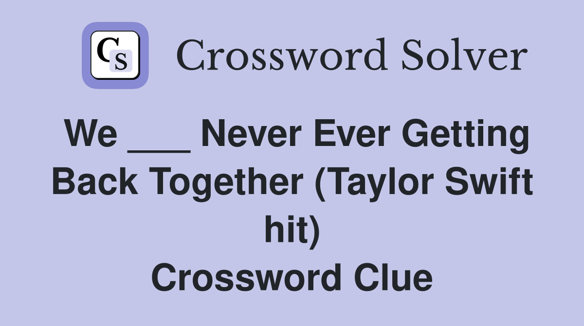 We ___ Never Ever Getting Back Together (Taylor Swift hit) Crossword Clue Answers Crossword