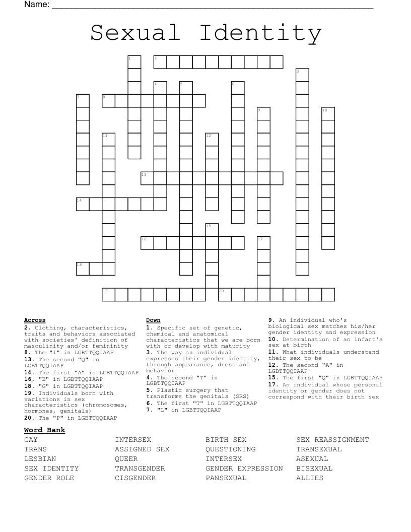 Sexual Identity Crossword WordMint